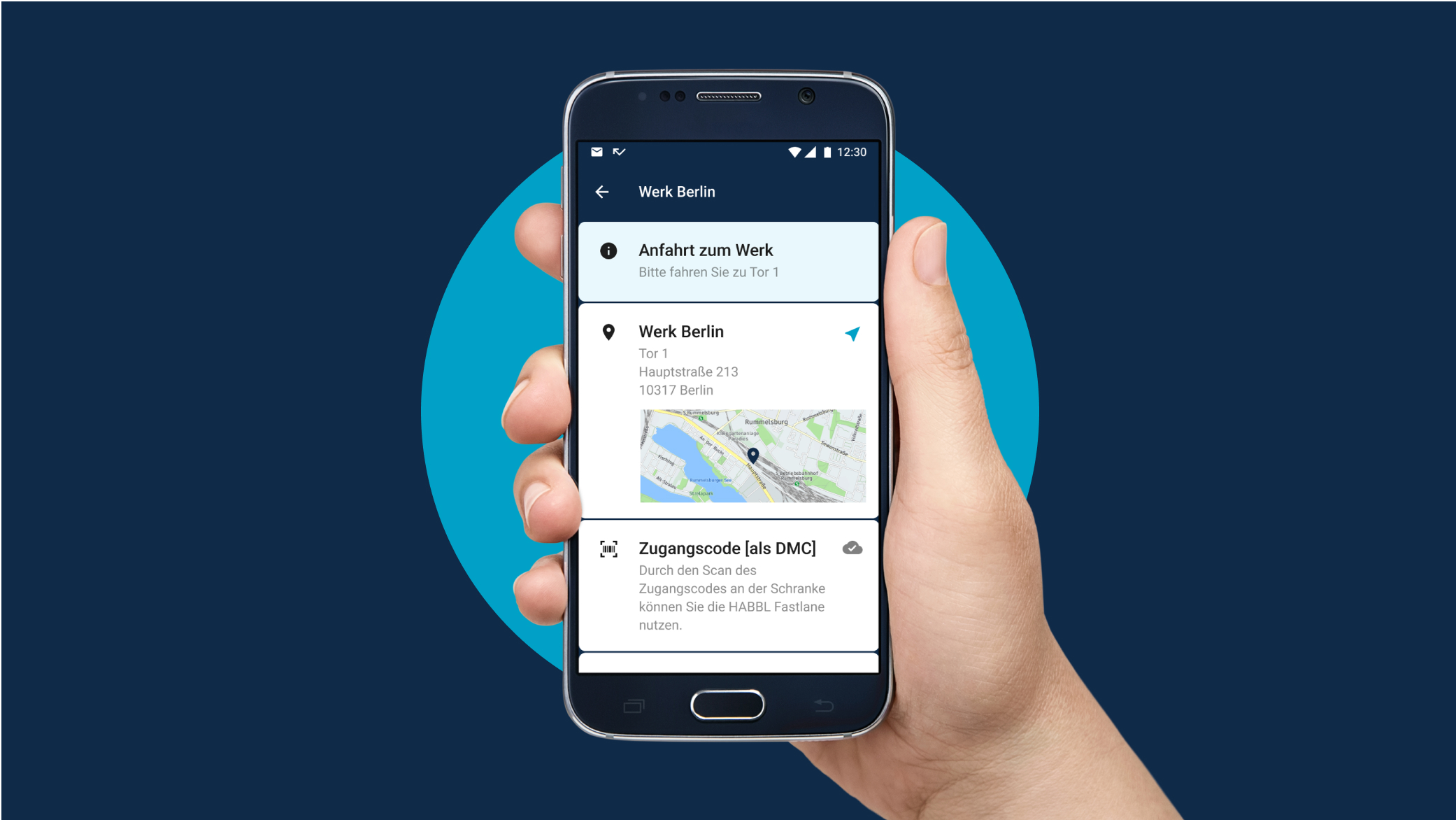 Beginnend mit der Startmeldung kommunizieren Fahrzeug und Tourziel im Viertelstundentakt die voraussichtliche Ankunftszeit, ohne dass der Fahrer eingreifen muss. Damit verbessern sich die Planungsoptionen vor Ort ohne vorfestgelegte Zeitfenster. Der Zielpunkt sendet positionsbasiert dann eine Meldung, ob der Lkw direkt vorfahren kann oder erst noch eine Pause einlegen soll. Auch der Zugangscode zum Werksgelände wird direkt in die HABBL App übertragen.