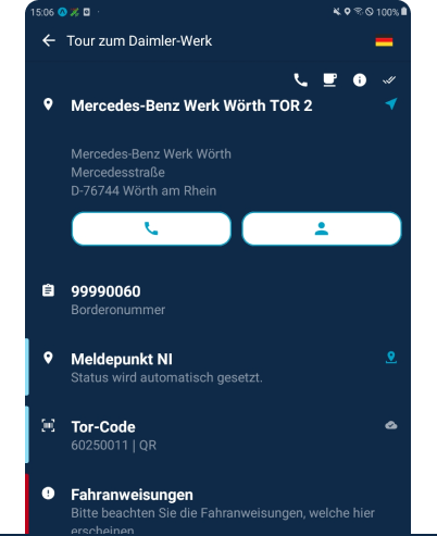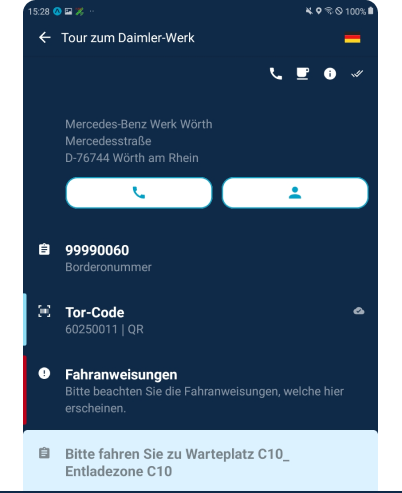 Um vor Ort eine zügige Abfertigung zu gewährleisten, informiert HABBL das Werk rechtzeitig vor dem Ziel über die bevorstehende Ankunft. Wenn der Verkehr in der Zufahrt fließt und die passende Rampe frei ist, kann der Fahrer direkt vorfahren. Verzögerungen kann das Werk zurück ins Fahrzeug und die Disposition der Spedition melden.
