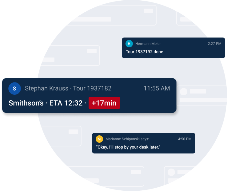 Information about incidents and automatic notifications of missed time slots can be shared in real time and factored in at an early stage. This helps your employees and customers plan and coordinate connecting processes.